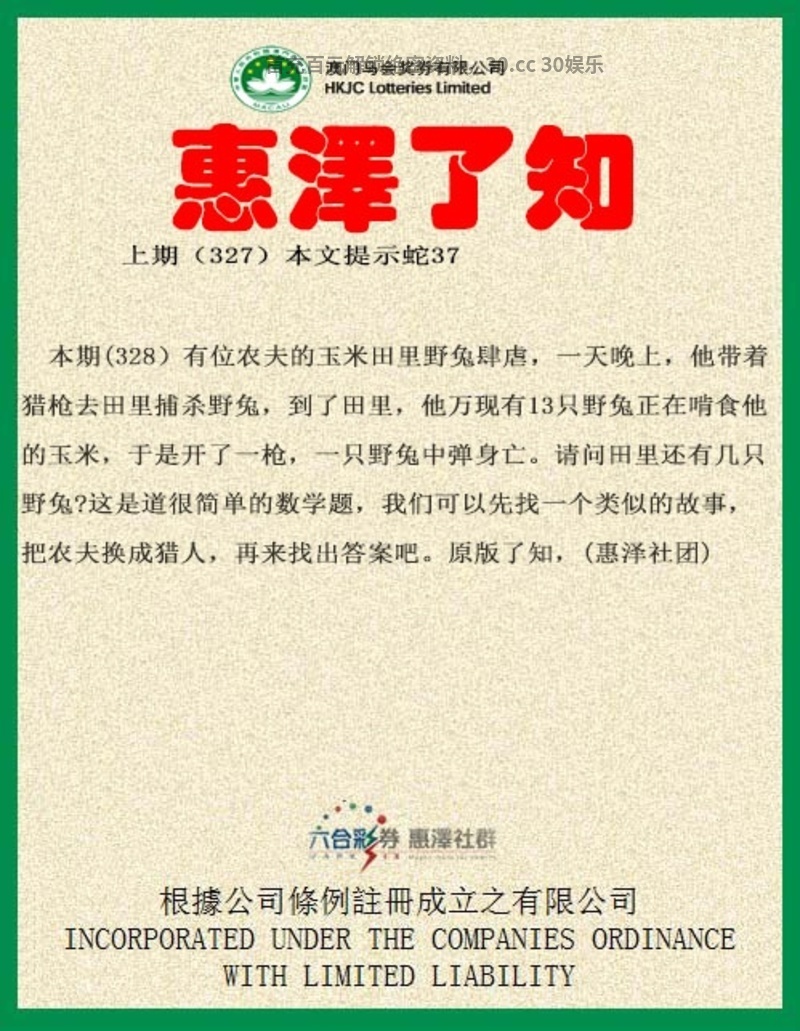 【惠泽了知】328期:有位农夫的玉米田里野兔肆虑,一天晚上,他带着猎枪去田里捕杀野兔,到了田里,他万现有13只野兔正在啃食他的玉米,于是开了一枪,一只野兔中弹身亡。请问田里还有几只野兔?这是道很简单的数学题,我们可以先找一个类似的故事,把农夫换成猎人,再来找出答案吧。原版了知,惠泽社团!
